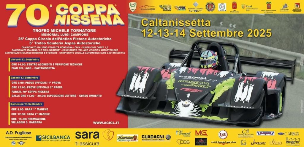 Parte domani 11 settembre il programma ufficiale della 70^ Coppa Nissena, la cronoscalata con il più alto numero di edizioni.