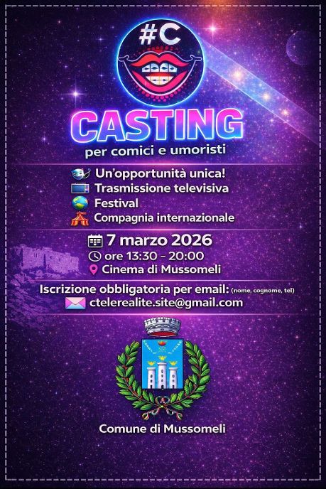 Ha presto ufficialmente il via sabato 17 gennaio a Mussomeli il casting nazionale per comici e umoristi, un progetto culturale e artistico innovativo dedicato alla scoperta di giovani talenti nel campo della comicità e dell’umorismo.