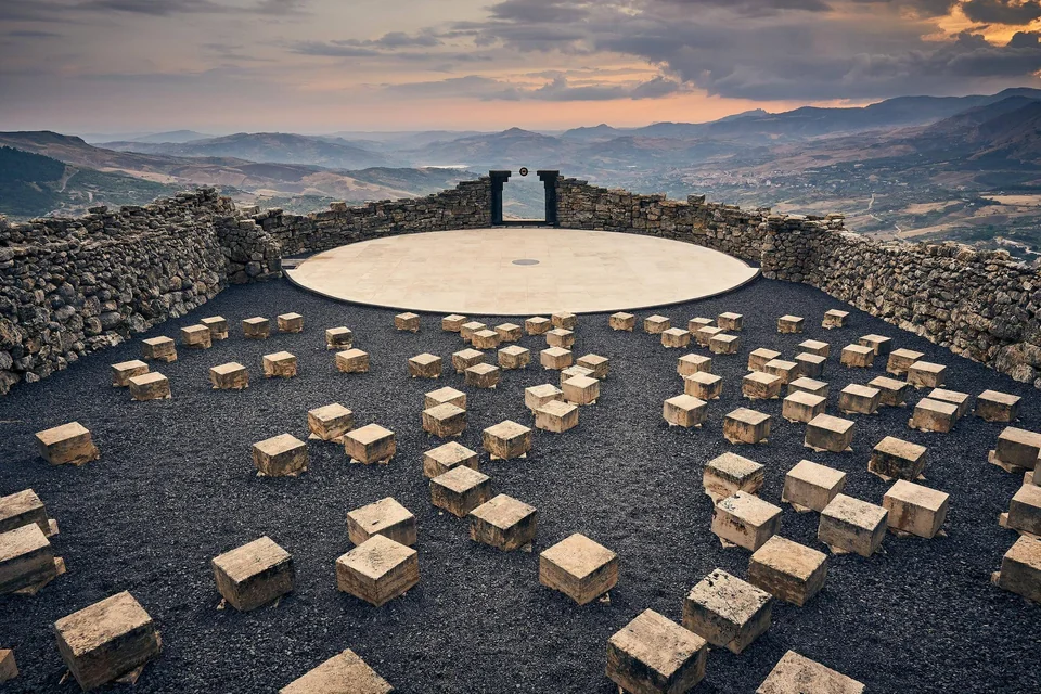 Poeta visionario ha saputo trasformare questo spazio naturale in un tempio in cui fermarsi a riflettere. Geometrie semplici, poche sculture che evocano il passato e si fondono con la natura ed il paesaggio. Il cielo e la terra si accarezzano all’orizzonte. L’alba ed il tramonto celebrano il rito quotidiano della vita che segna il passare degli anni. Fermarsi a guardarli dall’alto di quel monte può regalare momenti di pace e serenità a chi saprà goderla.