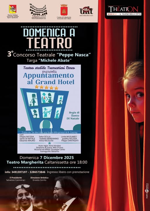Eventi“Appuntamento al Grand Hotel” per il Concorso Peppe Nasca Targa Michele Abbate, domenica 7 dicembre ore 18 Teatro Margherita Ultimo aggiornamento: Dicembre 5, 2025 1:24 pm redazione 66 Views Condividere CONDIVIDERE TAGGED:Ernesto CerritoSalvatore cannistraci Condividi Questo Articolo Facebook Twitter Whatsapp Whatsapp Copy Link Print