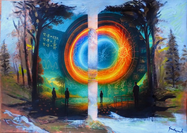 Dopo la chiusura della mostra, l’esperienza vissuta al CNAO ha continuato a risuonare nell’immaginazione di Guadagnuolo, generando un impulso creativo che va oltre la dimensione espositiva. L’incontro con la fisica applicata alla cura, con la potenza silenziosa del Sincrotrone e con l’umanità dei pazienti e dei ricercatori ha aperto nell’artista un nuovo fronte di ricerca, spingendolo a interrogare ciò che normalmente resta fuori dal dominio della percezione. Da questa risonanza è nata l’idea di sviluppare un ciclo di opere in chiave scientifica, un percorso che esplora campi, particelle, orbite, energie e processi invisibili, traducendoli in forme poetiche e visionarie.