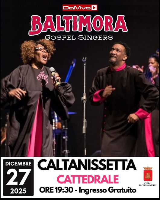 Sabato 27 dicembre alle 19.30, nella Cattedrale di Caltanissetta arriverà il Baltimora Gospel Singers, uno del migliori gruppi di spicco di Baltimora, in Maryland.