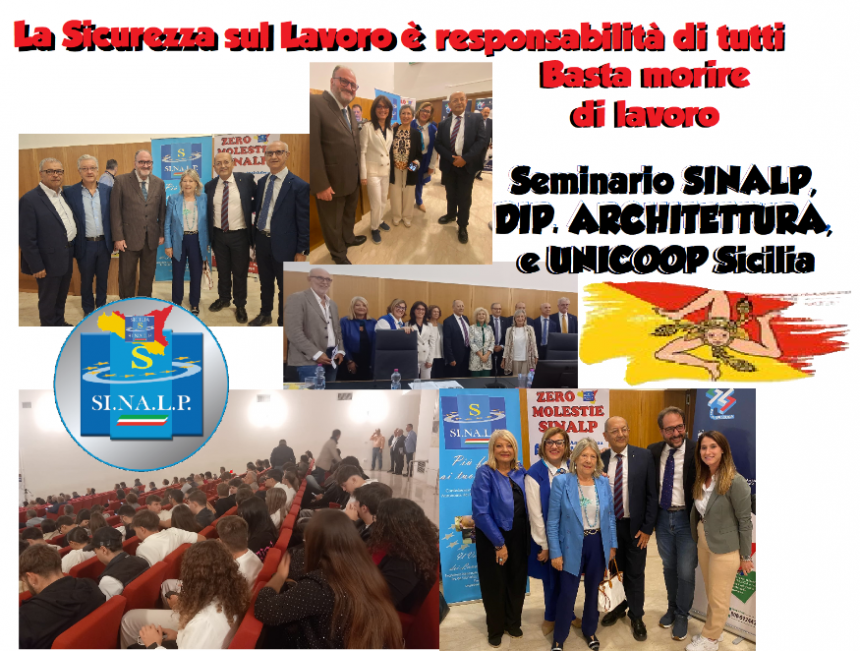 Per dare un senso reale e concreto alla crescita sociale ed economica della nostra terra, la Confederazione Sindacale autonoma SINALP SICILIA, in collaborazione con UNICOOP SICILIA ed il DIPARTIMENTO di ARCHITETTURA dell’Università Statale di Palermo, hanno dato vita al Seminario “La sicurezza sul lavoro è responsabilità di tutti – Basta morire di lavoro” con l’obiettivo di dare vita ad un confronto tra i tanti aspetti inerenti la Sicurezza, e riflettendo sulle sfide attuali e future nel campo della salute e della sicurezza sul lavoro.