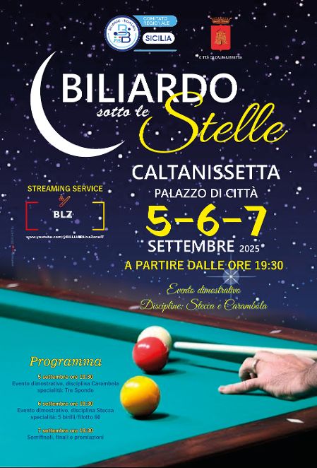 I campioni del biliardo si sfideranno nella nostra città dal 5 al 7 settembre nell’inconsueta e suggestiva location del chiostro del Comune di Caltanissetta, che ospiterà due importanti manifestazioni nazionali “sotto le stelle”.