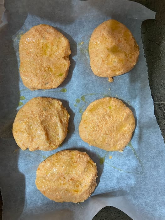 Formare dei burgher e metterli in forno a 200° per circa 25′-30′ con un filo d’olio