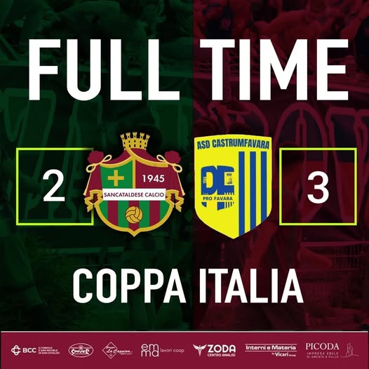 Si è giocata ieri al “Mazzola” la partita di Coppa Italia che ha deciso la vittoria del Castrumfavara e l’eliminazione della Sancataldese ai sedicesimi di finale per 2 a 3. I gialloblu giocheranno quindi gli ottavi contro la Nocerina, che ha vinto con la Reggina.