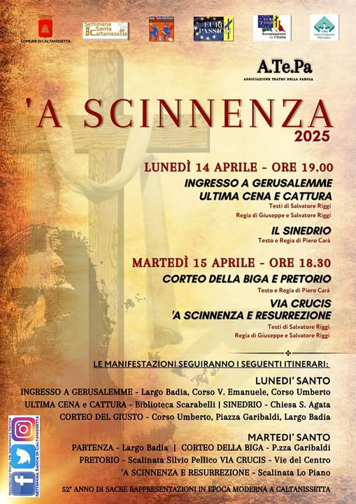 EventiCaltanissetta: “‘A Scinnenza” per le strade del centro storico rinnova la grande tradizione del dramma sacro, il 14 e 15 aprile a cura di A. Te. Pa. Ultimo aggiornamento: Aprile 13, 2025 2:53 pm redazione 170 Views Condividere CONDIVIDERE Condividi Questo Articolo Facebook Twitter Whatsapp Whatsapp Copy Link Print