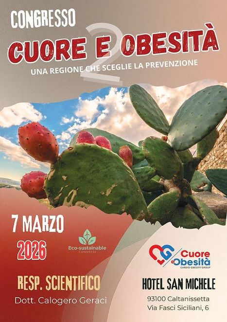 Sabato 7 marzo 2026, nella Sala Congressi dell’Hotel San Michele di Caltanissetta, si terrà il Congresso “Cuore e Obesità – Rischio Cardiovascolare, Diabete, Nutrizione e Stile di Vita”, promosso da ACRISAssociazione Cuore Reni Ipertensione, con la responsabilità scientifica del dott. Calogero Geraci e l’organizzazione di Full Congress – Eventi & Congressi.
