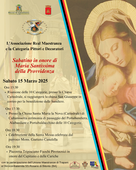 Dopo la Cerimonia del Passaggio delle Consegne avvenuta domenica scorsa, sabato 15 marzo si svolgerà il “Sabatino del Capitano” in onore di Maria Santissima della Provvidenza (protettrice della Real Maestranza).