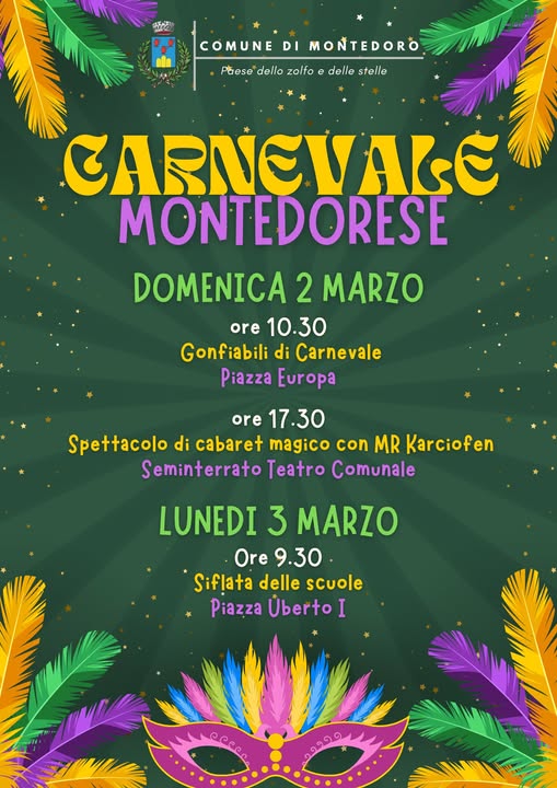 EventiCarnevale a Montedoro 2 e 3 marzo Ultimo aggiornamento: Febbraio 25, 2025 2:41 pm redazione 313 Views Condividere 0 Min Leggere CONDIVIDERE Cabaret, gonfiabili e sfilata delle scuole in maschera Condividi Questo Articolo Facebook Twitter Whatsapp Whatsapp Copy Link Print