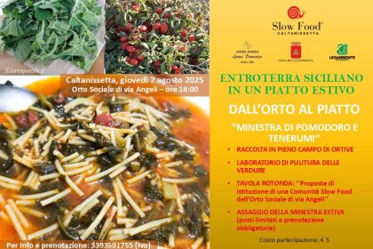 “Dall’orto al piatto” giovedì 7 agosto Orto sociale degli Angeli Caltanissetta