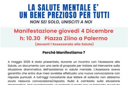 Manifestazione a Palermo il 4 dicembre per i servizi di salute mentale