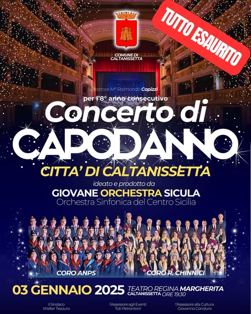 Venerdì 3 gennaio alle 19,30 al Teatro “Margherita” la Giovane Orchestra Sicula (Orchestra Sinfonica del centro-Sicilia) terrà il Concerto di Capodanno, giunto alla sua ottava edizione.