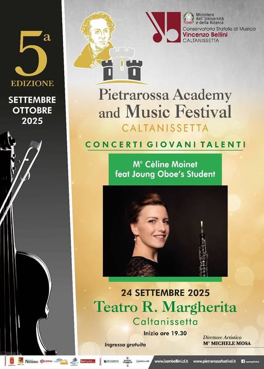 Prosegue la quinta edizione del Pietrarossa Academy and Music Festival, organizzata dal Conservatorio Statale di Musica “Vincenzo Bellini”, diretto dal M° Michele Mosa e presieduto dall’architetto Andrea Milazzo. Dopo il successo dell’inaugurazione, mercoledì 24 settembre alle ore 19.30 il Teatro Regina Margherita ospiterà il concerto “Giovani Talenti in Concerto”, un evento che vedrà protagonisti gli allievi del Conservatorio impegnati in una delle sezioni più attese del festival.