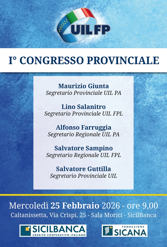 Cronaca AttualitàCongresso provinciale UIL Funzione Pubblica a Caltanissetta il 25 febbraio Ultimo aggiornamento: Febbraio 24, 2026 6:54 pm redazione 98 Views Condividere CONDIVIDERE TAGGED:Alfonso FarruggiaLino SalanitroMaurizio GiuntaSalvatore GuttillaSalvatore Sampino Condividi Questo Articolo Facebook Twitter Whatsapp Whatsapp Copy Link Print