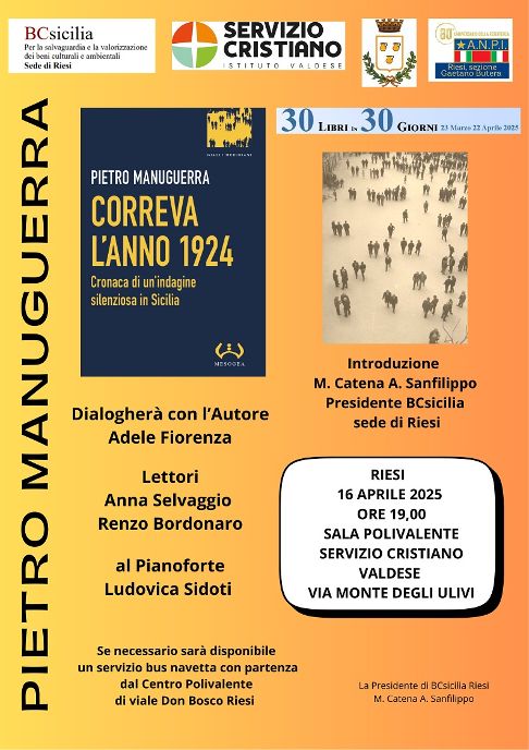 Nell’ambito dell’iniziativa “30 libri in 30 giorni” presentazione del volume Correva l’anno 1924 Cronaca di un’indagine silenziosa in Sicilia di Pietro Manuguerra