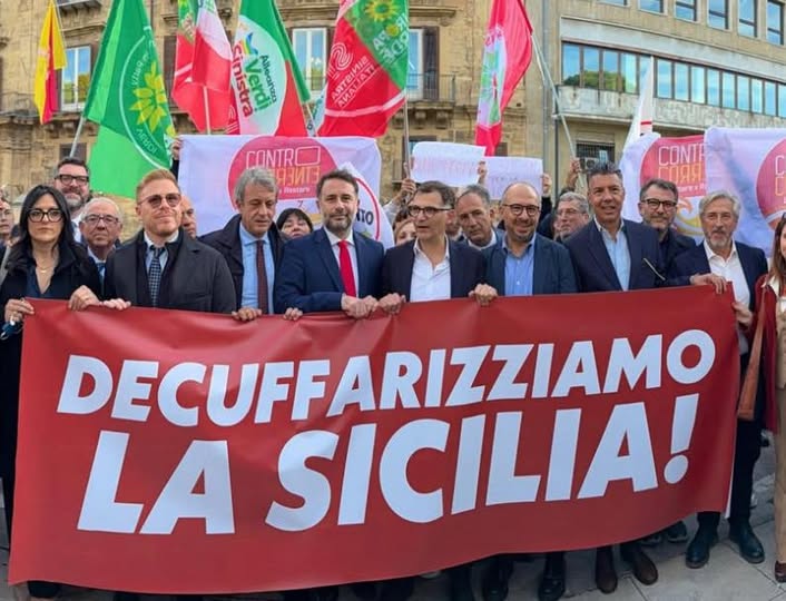 Grande manifestazione questo pomeriggio a Palermo, nella piazza che fronteggia il Palazzo della Presidenza della Regione, di tutte le forze politiche del campo progressista, per chiedere le dimissioni del Governo regionale, dopo l’esplosione dello scandalo sulla corruzione nella sanità e le richieste di arresto per Cuffaro, Romano e altri 16 esponenti del sistema di potere che ha inquinato le istituzioni.
