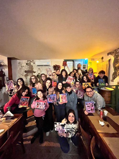 I partecipanti hanno potuto esprimere la loro interiorità più creativa, accompagnati da un calice di vino e buon cibo, in un’atmosfera di convivialità e ispirazione.