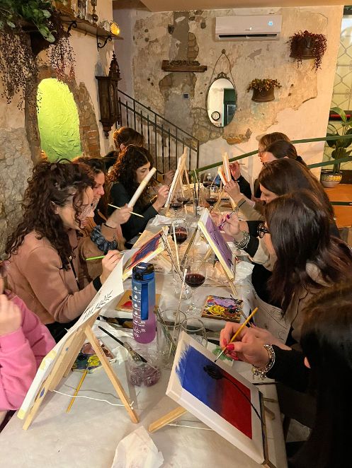 I partecipanti hanno potuto esprimere la loro interiorità più creativa, accompagnati da un calice di vino e buon cibo, in un’atmosfera di convivialità e ispirazione.