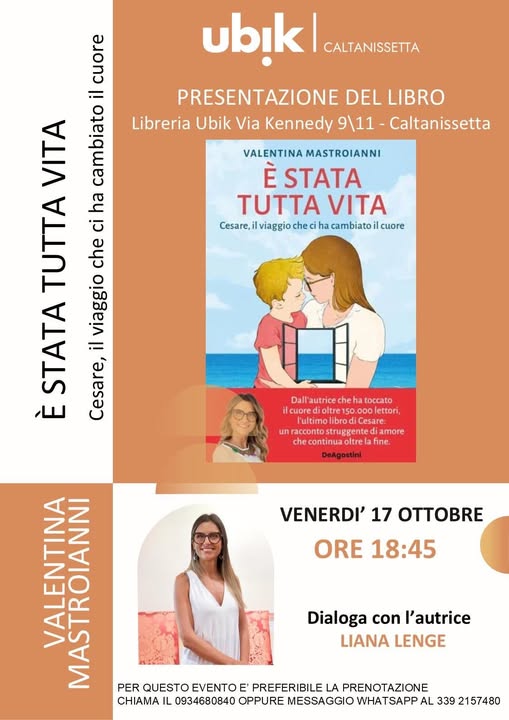 Eventi“E’ stata tutta vita” alla Ubik si presenta il libro di Valentina Mastroianni il 17 ottobre alle 18,45. Liana Lenge dialoga con l’autrice Ultimo aggiornamento: Ottobre 14, 2025 5:46 am redazione 288 Views Condividere CONDIVIDERE TAGGED:Liana LengeValentina Mastroianni Condividi Questo Articolo Facebook Twitter Whatsapp Whatsapp Copy Link Print