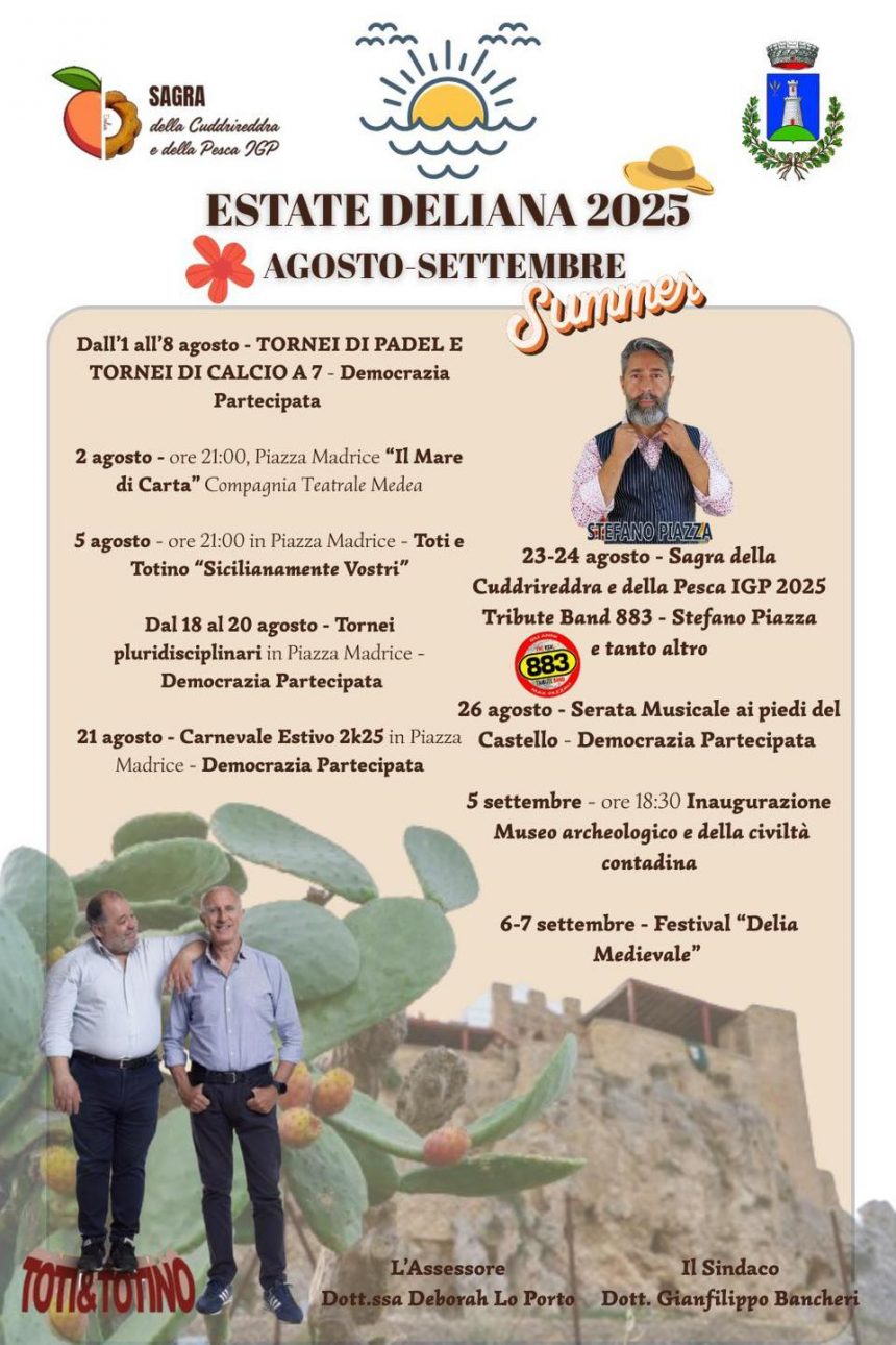 EventiEstate Deliana: i nuovi eventi di agosto e settembre Ultimo aggiornamento: Agosto 16, 2025 6:22 pm redazione 231 Views Condividere CONDIVIDERE TAGGED:Deborah Lo PortoGianfilippo Bancheri Condividi Questo Articolo Facebook Twitter Whatsapp Whatsapp Copy Link Print