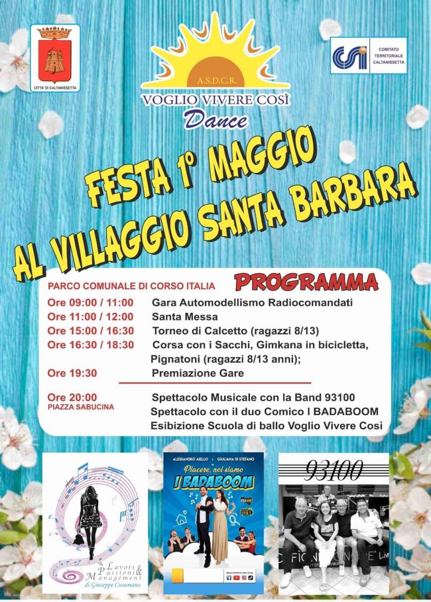 EventiFesta del 1° Maggio al Villaggio S. Barbara: il programma della giornata Ultimo aggiornamento: Aprile 30, 2025 5:05 pm redazione 130 Views Condividere CONDIVIDERE Condividi Questo Articolo Facebook Twitter Whatsapp Whatsapp Copy Link Print