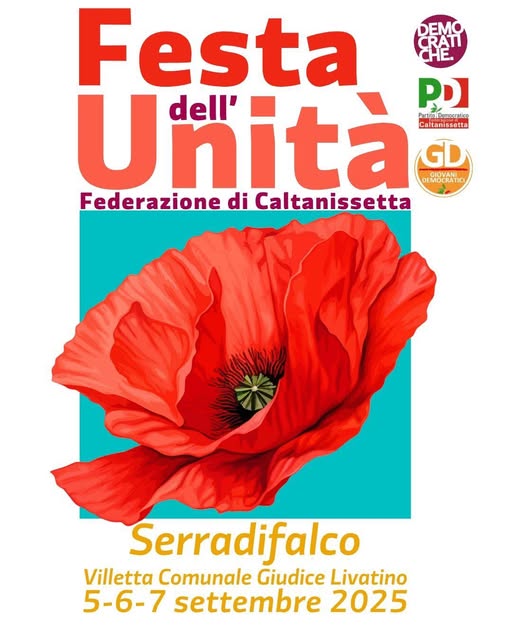Il Partito Democratico della Federazione Provinciale di Caltanissetta presenta la Festa dell’Unità 2025, che si svolgerà a Serradifalco, presso la Villetta Comunale Giudice Livatino, nei giorni 5, 6 e 7 settembre.