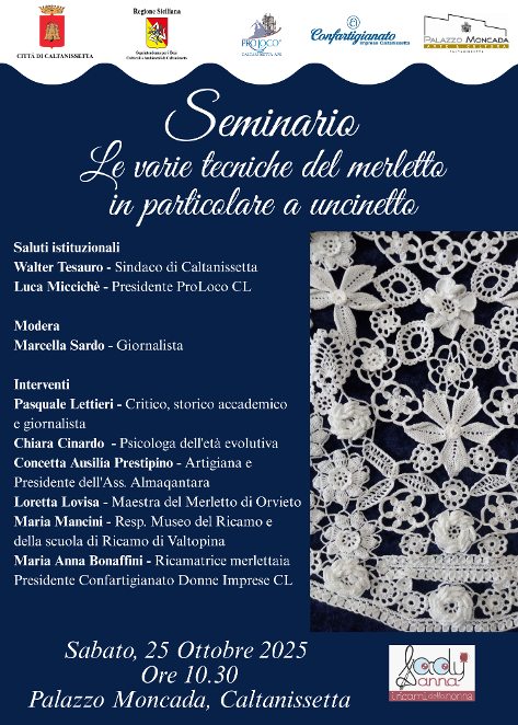 L’evento è patrocinato dal Comune di Caltanissetta e dall’associazione Lady Anna – I ricami della nonna, Regione Siciliana, ProLoco Caltanissetta e Confartigianato Imprese.
