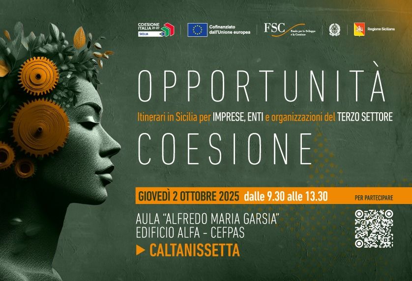 Fondi Europei e nazionali: il 2 ottobre a Caltanissetta la quinta tappa di “Opportunità Coesione”