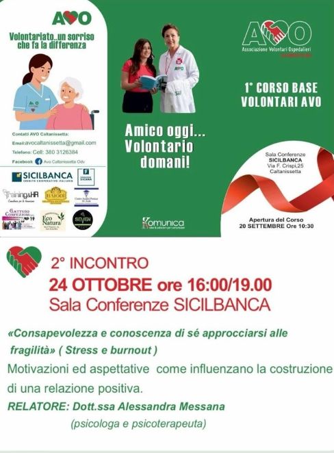 Per maggiori informazioni sul corso e sulle modalità di partecipazione, fare riferimento ad Avo Caltanissetta 3803126384 avocaltanissetta@gmail.com