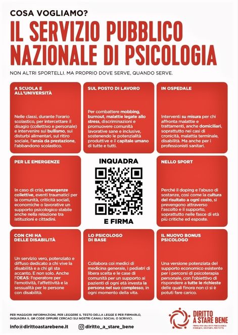 La pandemia, le difficoltà economiche, la solitudine sociale e le sfide quotidiane hanno reso ancor più evidente quanto sia fondamentale e urgente garantire un sostegno psicologico pubblico, gratuito e accessibile, in ogni fase della vita e in ogni luogo della comunità.