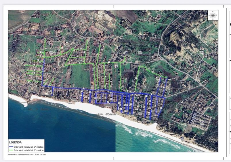 Il primo stralcio esecutivo, della durata complessiva di circa 24 mesi, è stato finanziato dalla Regione Siciliana per un importo pari a 3.323.500 euro e comprende la realizzazione della nuova rete fognaria, dei collettori principali e secondari, degli impianti di sollevamento e del collegamento finale verso la stazione di sollevamento prevista e realizzata con il progetto denominato ID107.