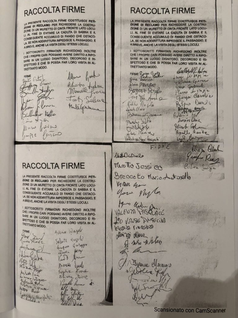I cittadini hanno presentato una petizione al sindaco chiedendo un intervento immediato al fine di rendere decorosa questa parte di cimitero comunale, l’interrogazione va a supporto di tale iniziativa nella consapevolezza che se l’ufficio tecnico comunale non viene assistito finanziariamente dalla politica, poco potrà fare per risolvere le criticità segnalate.