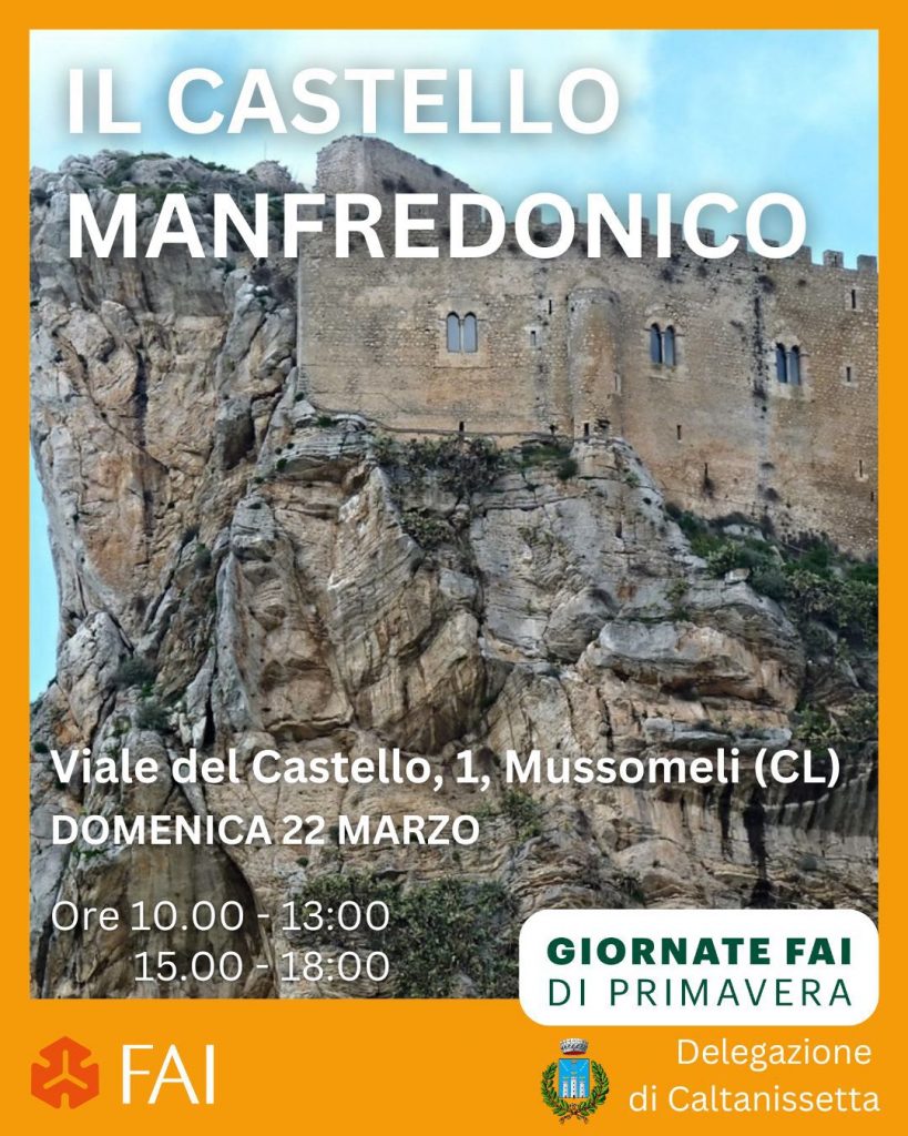 A Mussomeli, domenica 22 marzo, dalle 10 alle 13 e dalle 15 alle 17, il maestoso castello manfredonico, che da uno sperone di roccia domina il paesaggio mozzafiato del centro dell’Isola, sarà visitabile anche usufruendo di un servizio di bus-navetta offerto dal Comune, con partenze ogni mezz’ora da piazza della Repubblica, fino a 45 minuti prima dell’orario di chiusura.