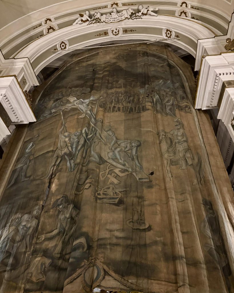 La visita a Mussomeli offrirà altre due occasioni preziose ed uniche: a Palazzo Sgadari l’ascolto dei “Lamentatori” della Passione di Cristo, iscritti nel REIS (Registro delle Eredità Immateriali della Sicilia), patrimonio UNESCO dal 2014, e l’esposizione, dopo diversi decenni, dell’imponente Telo Quaresimale dipinto, davanti all’altare del Santuario della Madonna dei Miracoli.