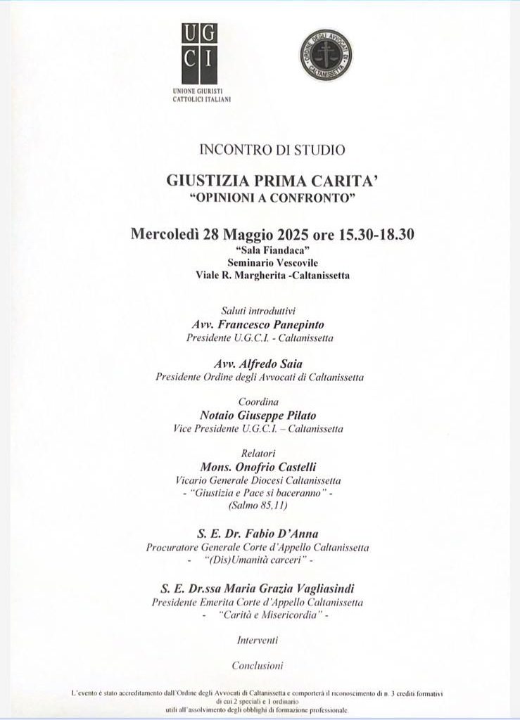 Eventi“Giustizia prima Carità” incontro di studio promosso dai Giuristi Cattolici il 28 maggio Ultimo aggiornamento: Maggio 23, 2025 12:35 pm redazione 208 Views Condividere CONDIVIDERE TAGGED:Alfredo Saiafabio d'annaFrancesco PanepintoGiuseppe PilatoMaria Grazia Vagliasindimons. onofrio castelli Condividi Questo Articolo Facebook Twitter Whatsapp Whatsapp Copy Link Print