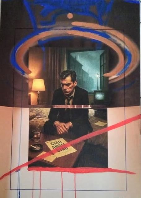 Ogni quadro è nato così: come un respiro trattenuto, come un passo nella nebbia, come un tentativo di avvicinarmi a un dolore che non è mai stato solo suo. Perché la solitudine di Tenco, in fondo, è la solitudine di tutti. La sua stanchezza è la nostra. Il suo desiderio di essere ascoltato è il più umano dei desideri.