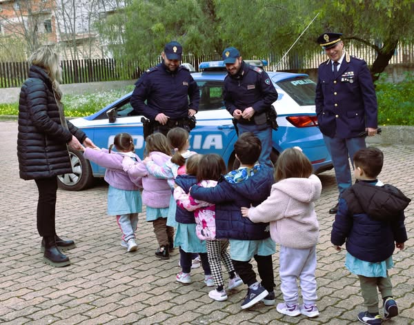 Al termine dell’incontro, nel piazzale della scuola, anche i bambini della scuola dell’infanzia si sono uniti a quelli della primaria per conoscere i mezzi in dotazione della Volante della Polizia.