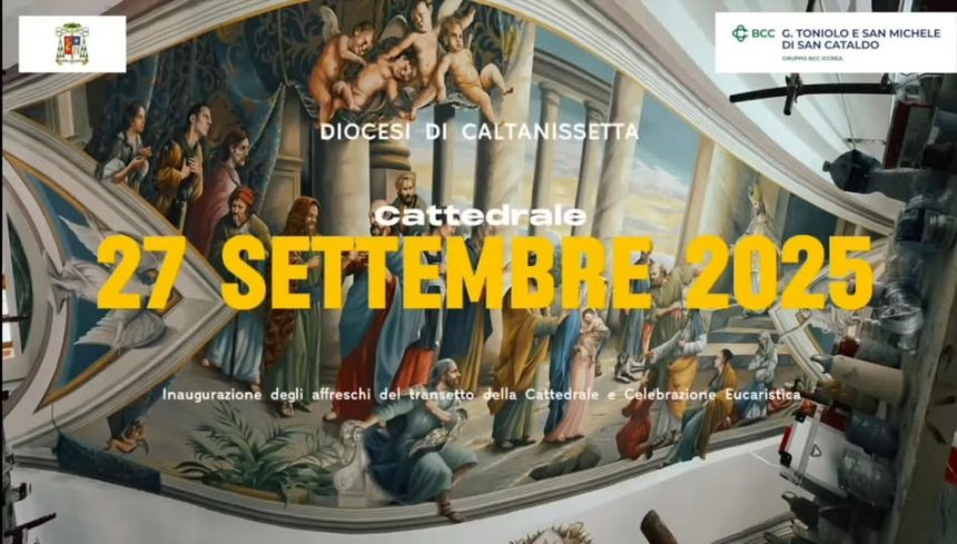 Il 27 settembre, giorno del suo XXII anniversario di Ordinazione episcopale e di ingresso in Diocesi, alle ore 9.45 Mons. Mario Russotto scoprirà il ciclo pittorico dedicato alla Vergine, affrescato nel transetto della Cattedrale. Si completa così l’opera iniziata dal Venerabile Mons. Giovanni Jacono, quinto Vescovo di Caltanissetta, che nell’immediato dopoguerra ha coraggiosamente voluto ristrutturare la chiesa, pesantemente danneggiata dai bombardamenti, riprendendo i lavori iniziati nel 1922 che prevedevano un ampliamento con il transetto, il presbiterio e il catino absidale. I lavori si conclusero nel 1946 e furono un segno di rinascita dalle macerie della guerra per tutta la città.