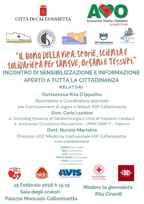 Una visione chiara: unire le forze per moltiplicare l’impatto sociale. Il prossimo 19 febbraio 2026, alle ore 15:15, la Sala degli Oratori di Palazzo Moncada ospiterà l’incontro: “Il dono della Vita: storie, scienza e solidarietà per sangue, organi e tessuti”.