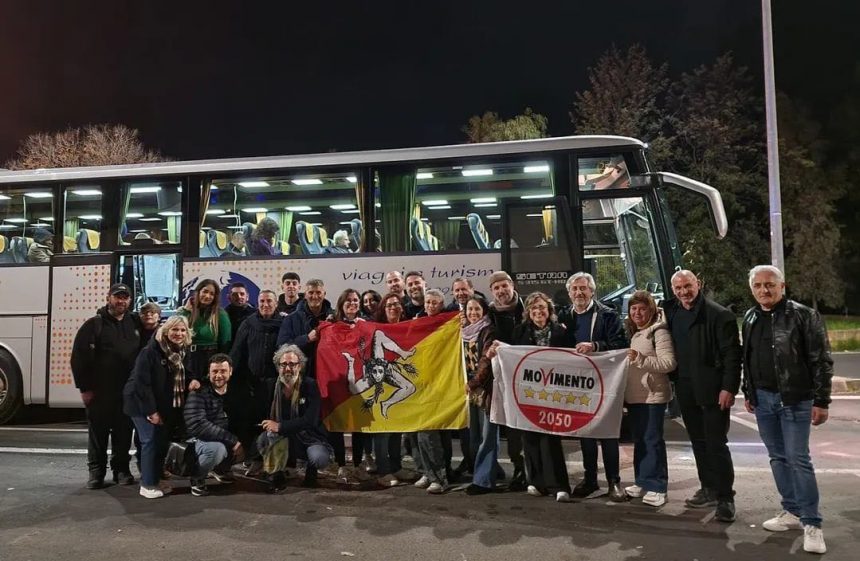 Il Movimento 5 Stelle a Roma contro il riarmo. Un pullman da Caltanissetta