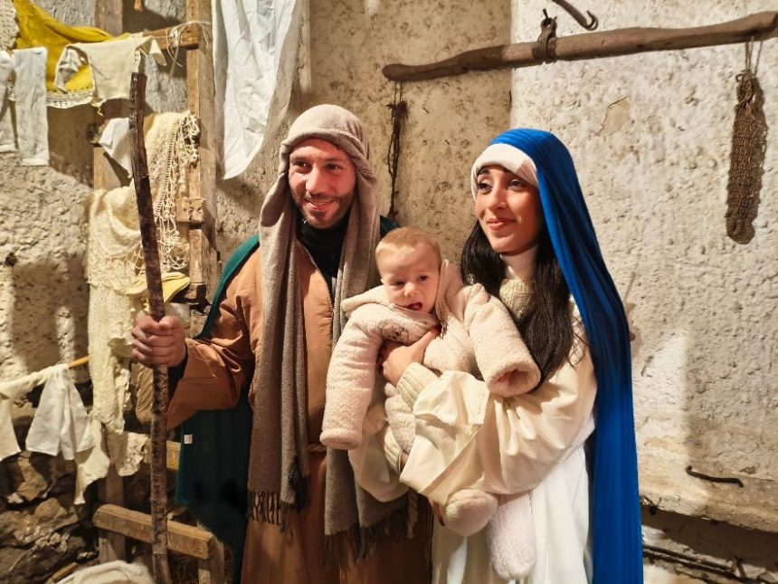 L’itinerario è curato con attenzione: soldati romani presidiano la piazza, venditori animano le botteghe, pastori camminano tra la gente, gli animali completano il quadro. È un’esperienza immersiva, nata quindici anni fa dalla parrocchia e cresciuta nel tempo grazie alla guida di tre sacerdoti che ne hanno accompagnato il cammino: padre Antonino Lo Vetere, padre Alessandro Rovello e oggi padre Giuseppe Di Rocco.