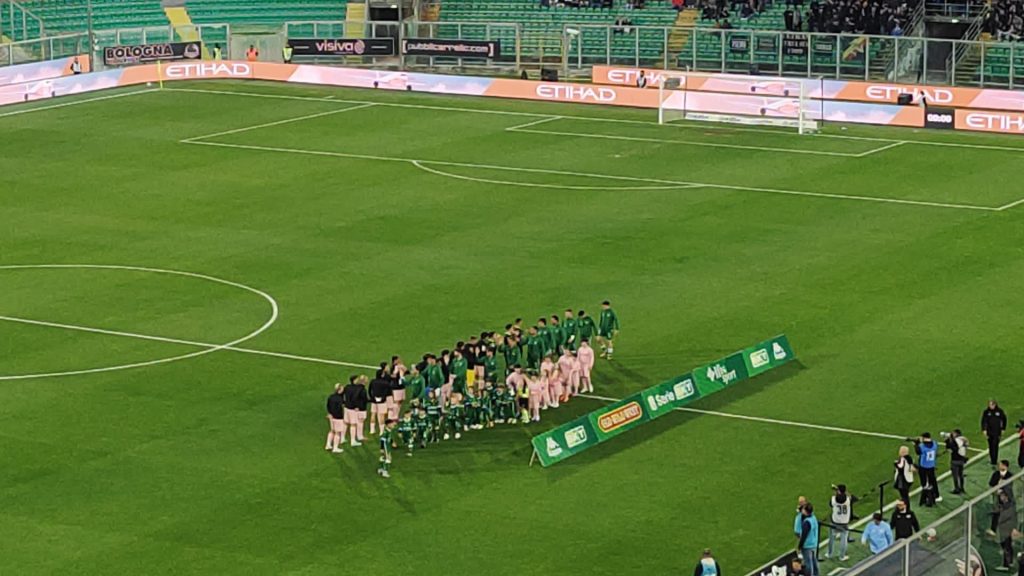 Quando il volto del Presidente Mattarella compare sui maxischermi dello stadio si leva un’ovazione tra i tifosi, incoraggiati dalla sua presenza autorevole, ancora più impegnativa per ben figurare e conquistare l’ambita Serie A, di cui tutta la città esprime in tutti i modi il desiderio.