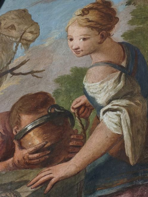 Davide giovane, prima di diventare re, trionfa sul gigante Golia. Ma il ciclo mostra anche i momenti privati: pascola il gregge, taglia il mantello a Saul, si difende dalla sua ira, riceve la profezia di Natan. Poi l’eroe che alza la testa del gigante sconfitto. Una vita che si muove tra coraggio, cadute e riscatti.