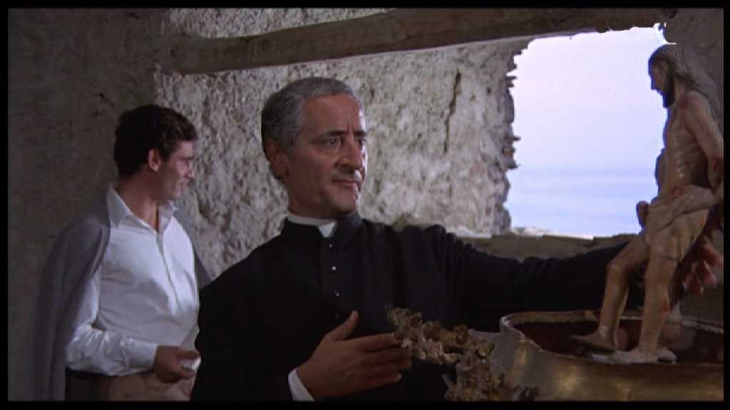 Lo zio Arciprete del romanzo segue i legami di sangue, lasciando per strada la scomoda via della verità dei fatti. Pur essendo un uomo di chiesa, aiuta i potenti e i collezionisti di arte. Non può sottrarsi ai bisogni di “questa” terra (il “parva cena”, nel film, appare emblematico). E’ uno dei principali artefici e protettori della rete di potere che il docente (anti)”eroe” cerca di smascherare. Conosce la verità ma cerca di insabbiarla. Rappresenta l’ipocrisia e la corruzione che si nascondono dietro la facciata di irreprensibilità.
