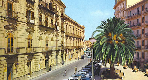 Riscendiamo le scale del palazzo soffermandoci a constatare le alterazioni che nel tempo sono state apportate. Segni della ignoranza storica e delle contingenti necessità negli anni. E’ calata la sera autunnale. L’aria è diventata ancora più frizzante. Varchiamo il grande portone in legno ancora accettabile. Il nostro sguardo si posa sulla dirimpettaia piazzetta intitolata allo scultore nisseno Michele Tripisciano, il cui busto troneggia al centro di un ancora decorosa aiuola. Pare guardare distrattamente il sonnacchioso via vai della gente del quartiere oggi di composita provenienza. Abbandoniamo le immagini di lord Bentinck e delle sue riunioni con occulte congreghe; del compagno di scuola del nostro autore prediletto; dello scrittore e della poetessa; in ultimo del celebre regista neorealista.
