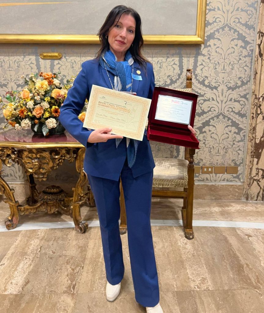 Concetta Pilato, diretta a Fiuggi con la Fipe, ha coniugato i due importanti eventi, ricevendo il premio da Francesco Le Noci e da Eugenio Bisceglia anche per la figlia.