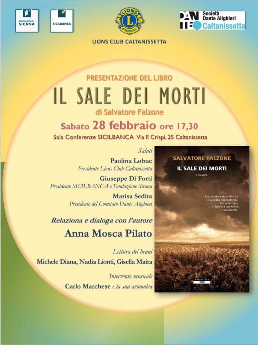 Sabato 28 febbraio alle 17,30, nella sala conferenze di Sicilbanca a Caltanissetta (via Crispi, 25) presentazione dell’ultimo romanzo di Salvatore Falzone, l’avvocato-scrittore: “Il sale dei morti” edito da NeriPozza e ottimamente recensito dalla critica letteraria nazionale.
