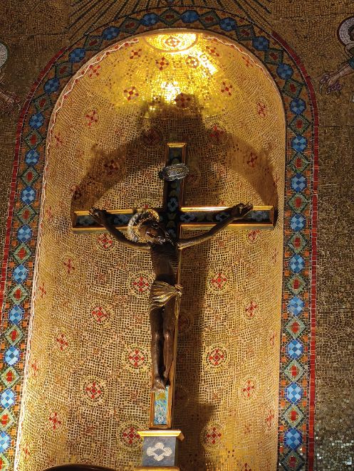 È una chiesa modesta, francescana nell’anima prima ancora che nello stile, che accoglie i visitatori con una semplicità disarmante. E al centro, come una presenza che non ha bisogno di essere spiegata, un piccolo crocifisso: scuro, consunto, antichissimo.