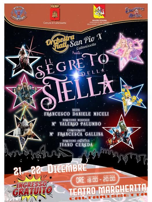 Due spettacoli al giorno per due giorni al Teatro Margherita, un week end prenatalizio all’insegna della buona musica e della danza: “Il segreto della stellasabato 21 e domenica 22 dicembre, alle 18 e alle 20, con la regia di Francesco Daniele Miceli.